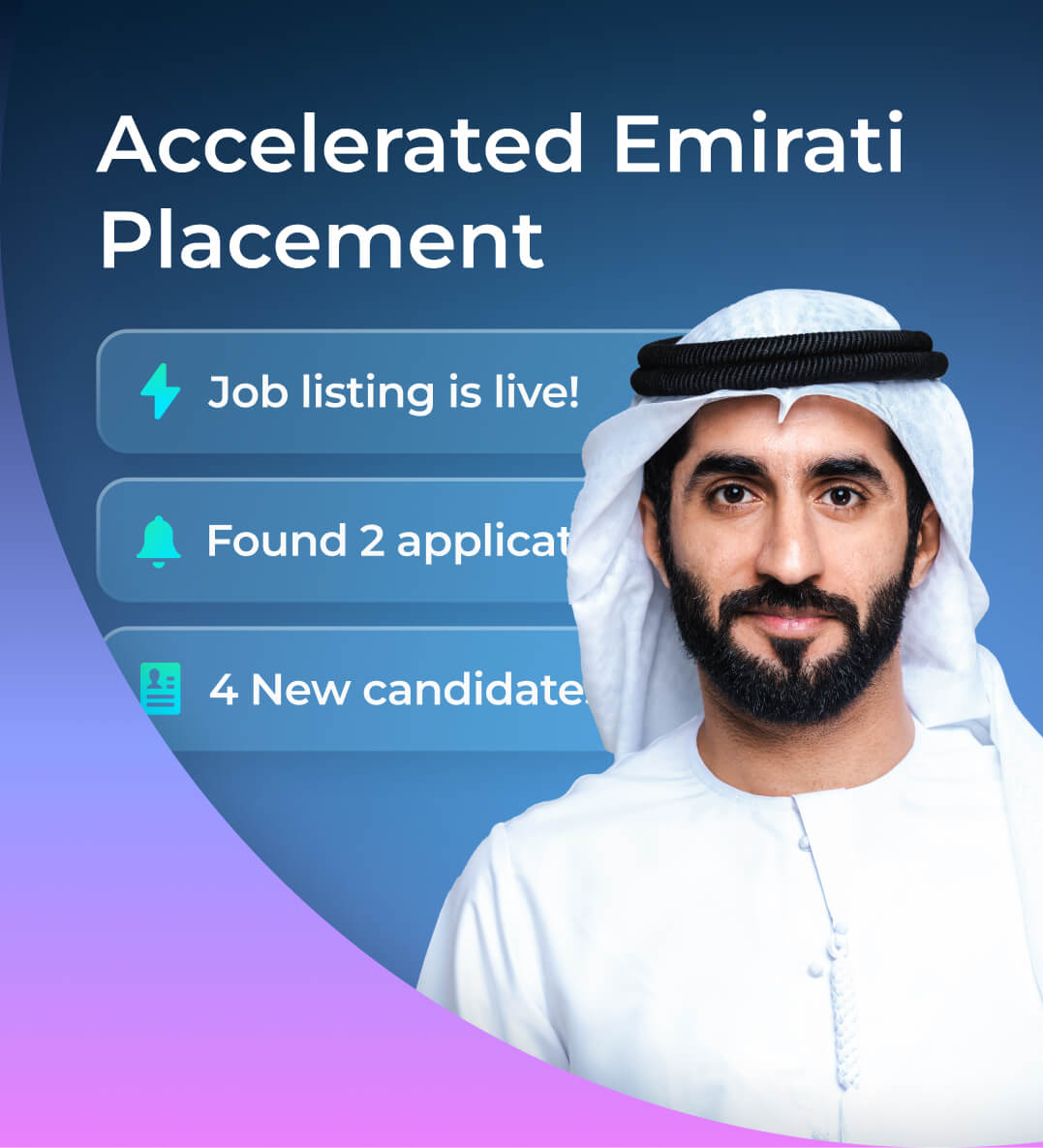 Every role is instantly matched with thousands of verified Emirati professionals and ranked by relevance in real time so you can quickly find the right fit.